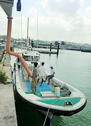 5月25日と26日の2日間、沖縄本島でボートとショアから釣りをして来た。25日は北谷町の浜川漁港からゆりか(船名)で沖に出た。メンバーは儀保さん、山田さん、上村さんと私の4人のつり人で、おきなわ釣り王国の取材となった。前日に儀保さんとの打ち合わせで、当初の予定は深場のアカイカ型のアオリイカ狙いだったが、海人(漁師)が一日で2〜3杯と不調なため、デカアオリを楽しみにしていたのだが断念してルアーでの五目狙いに変更となった。