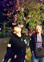 店を出ると桜が咲いていて中には満開の木も有りましたが、食べようとしている人がいたみたいですが、ピンボケなので誰だか・・・