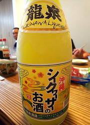 泡盛は、古酒くら25°日本酒の徳利で1合を水割りで飲みます。