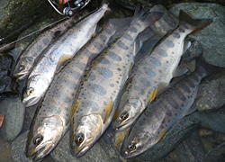 吉野川本流の銀化アマゴ。山田さんは増水が落ち着き始めた澄みぎわを狙って釣った。