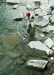 最初の釣り場に着く早々、田所氏が私に訊いた。「ここって大きい鱒、釣れるの?」