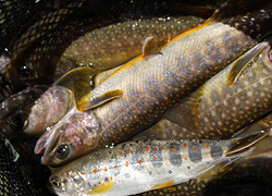 フライで、けっこうな数のイワナやアマゴが釣れて楽しかった。