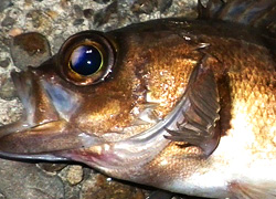 外灯の明かりで底があらわになっている漁港内の浅場を丁寧に探ってみる。道具ならメバルタックルでじゅうぶんである。小型のワームで底付近を誘っているといいアタリが来る。食いしん坊らしく、もう待ちきれないとばかりにワームに襲いかかって来たとはっきりわかるような口の使い方である。フッキング後のファイトぶりがこれまたたまらない。グイグイと仕掛けを引いて海中を走りまわる。カサゴほどすぐさま穴や根の裂け目に逃げ込もうと企てないので、じゅうぶん引き味を堪能させてもらえる。