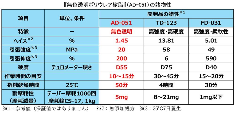 ユニチカ株式会社(本社:大阪市中央区 社長:藤井実)は、ピュアポリウレアでありながら、高い透明性と高強度・高伸度を兼ね備えた手塗りが可能な『無色透明ポリウレア樹脂』を開発しました。